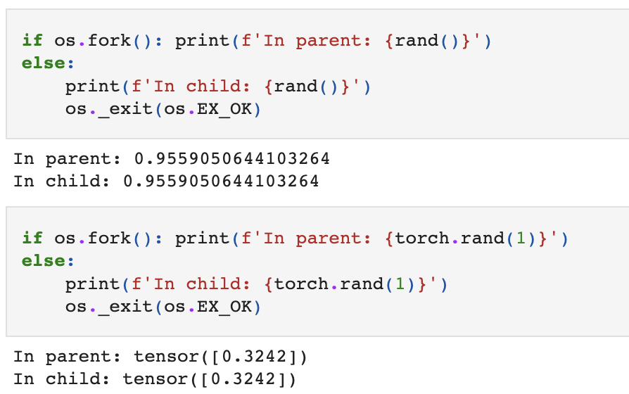 You should be really careful about random state when parallel processing. If you aren’t careful, the random seed will be copied over to other processes and each process will generate the same random numbers! I learned this from a fastai lecture in the 2022 part 2 course.